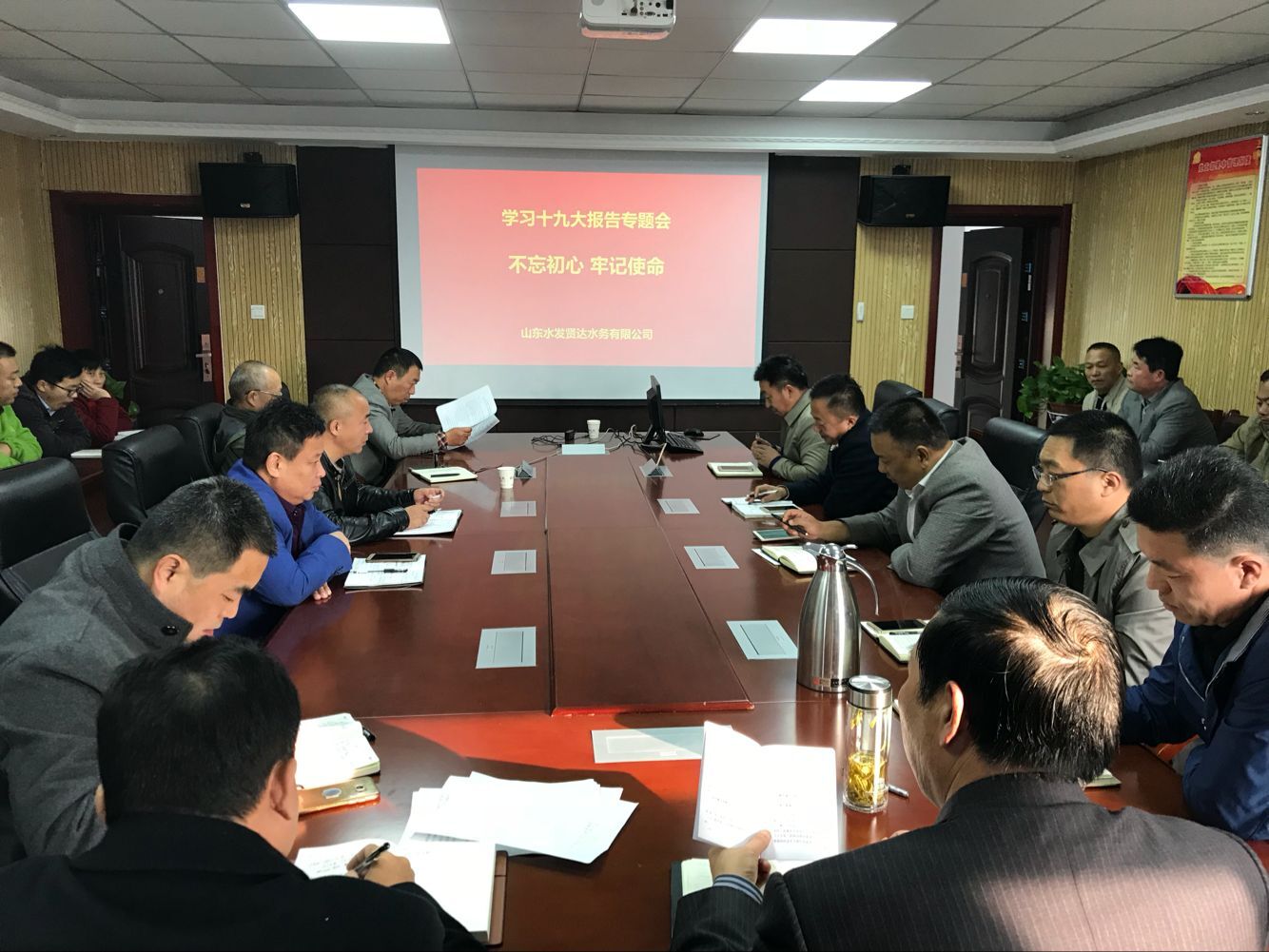 為了貫徹落實水發集團關于學習十九大精神的要求,更好地組織引導公司廣大干部職工學習十九大精神,為公司供水事業增添正能量,12月4日,公司召開專題學習會議,認真學習黨的十九大精神,深刻理解和準確把握習近平總書記十九大報告的精神實質和科學內涵。