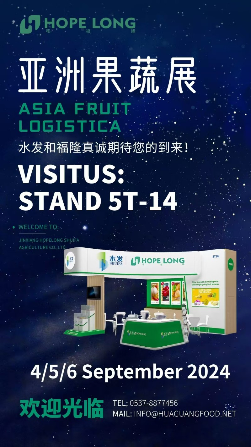 9月4日-6日,亞洲國際果蔬展覽會在中國香港亞洲國際博覽館隆重召開,來自全球各地的超過1000名新鮮果蔬產品行業專業人士及多國展團齊聚一堂,水發和福隆(展位:STAND 5T-14)以更加飽滿的熱情和優質的產品陣容再次亮相展會。