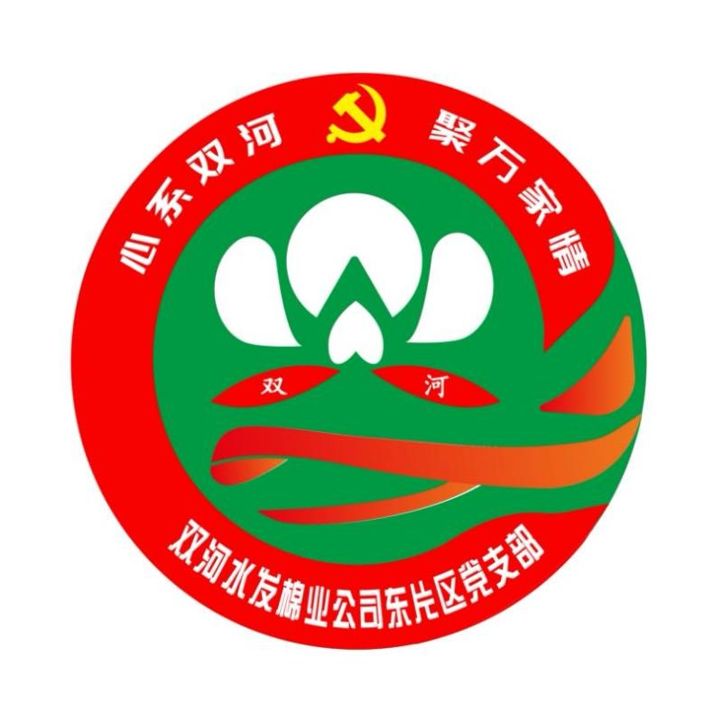 雙河水發棉業公司東片區黨建品牌標識主架構采用“心系雙河 聚萬家情”,黨旗為引領,結合綠葉、棉花、飄帶等元素,寓意:
