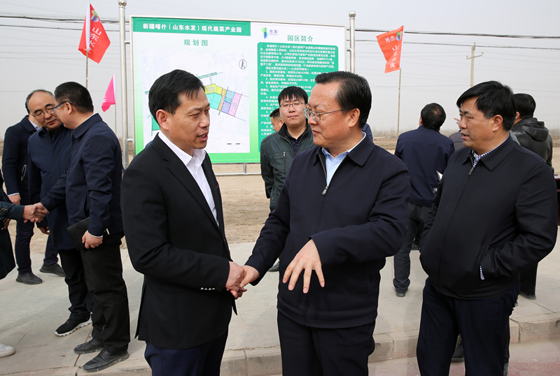 新疆維吾爾自治區(qū)黨委副書(shū)記李鵬新一行到新疆喀什(山東水發(fā))現(xiàn)代蔬菜產(chǎn)業(yè)園項(xiàng)目現(xiàn)場(chǎng)進(jìn)行調(diào)研