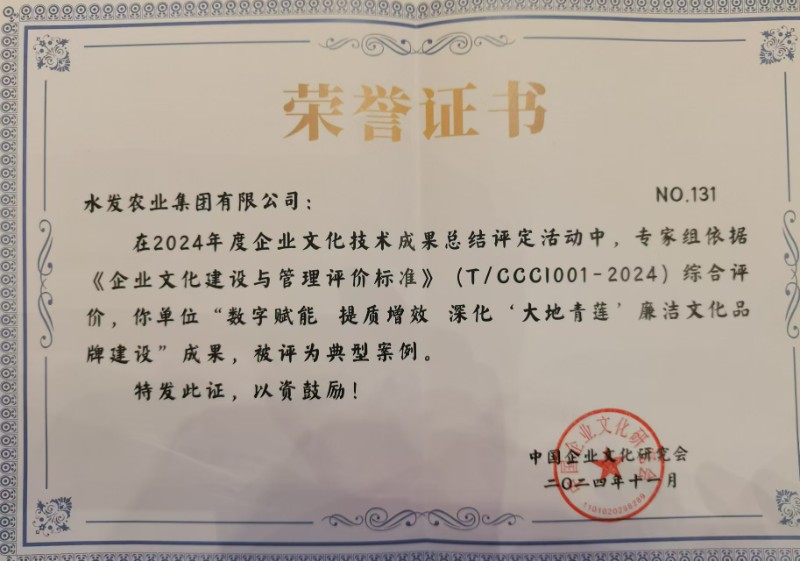 水發農業集團“大地青蓮”廉潔文化品牌獲評中國企業文化研究會典型案例
